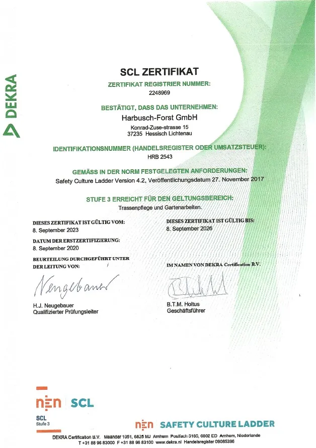 Die Harbusch Forst GmbH verbindet forstwirtschaftliches Know-how mit moderner Technik und einem hohen Sicherheitsstandard. Ob bei der Trassenfreihaltung für Energie- und Industrieanlagen oder der Pflege kommunaler Flächen und Verkehrswege – wir gewährleisten eine fachgerechte, effiziente und nachhaltige Umsetzung. Damit schaffen wir die Grundlage für Betriebssicherheit, Versorgungssicherheit und langfristig gepflegte Infrastrukturen.